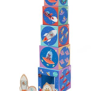 Ovaj veselo obojeni, edukativni toranj za slaganje s 5 kockica različitih veličina jednu na drugu možete složiti u toranj i postaviti ih jednu do druge kao slagalicu. Pokušajte složiti skrivenu slagalicu tako da postavite blokove s ispravnim stranicama jednu do druge. 5 stranica ukrašeno je svemirskim letjelicama, izvanzemaljcima, životinjama i brojevima kako bi se djeca naučila slagati, rješavati zagonetke, brojati i prepoznavati stvari. Najveći blok za slaganje oblikovan je poput kućice za igru za isporučene drvene figure.