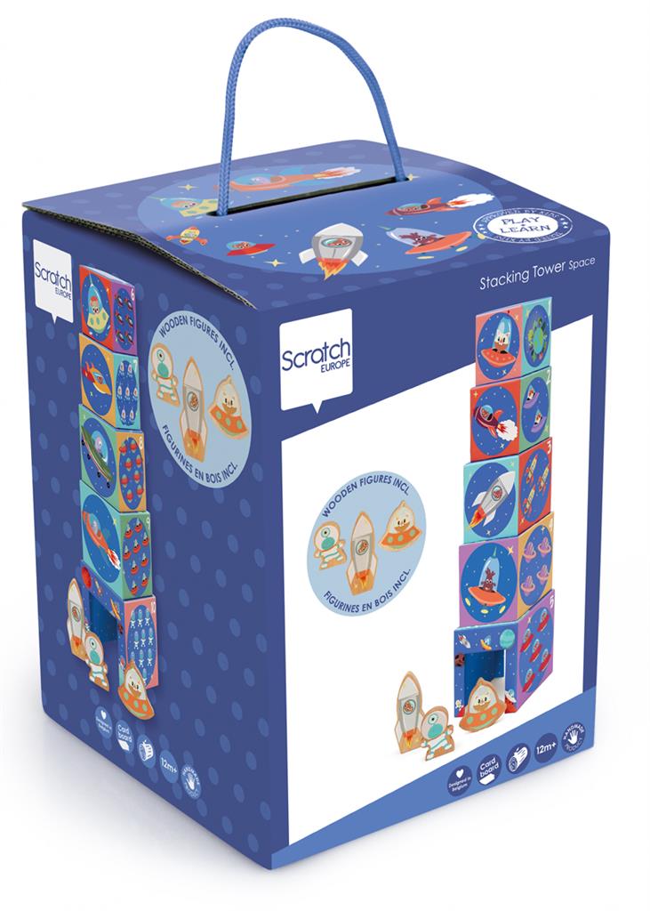 Ovaj veselo obojeni, edukativni toranj za slaganje s 5 kockica različitih veličina jednu na drugu možete složiti u toranj i postaviti ih jednu do druge kao slagalicu. Pokušajte složiti skrivenu slagalicu tako da postavite blokove s ispravnim stranicama jednu do druge. 5 stranica ukrašeno je svemirskim letjelicama, izvanzemaljcima, životinjama i brojevima kako bi se djeca naučila slagati, rješavati zagonetke, brojati i prepoznavati stvari. Najveći blok za slaganje oblikovan je poput kućice za igru za isporučene drvene figure.